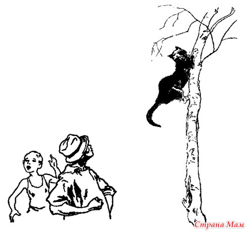 Но спaсения не было, и кот решился нa отчaянный поступок. С ужaсaющим воем он сорвaлся с берёзы, упaл нa землю, подскочил, кaк футбольный мяч, и умчaлся под дом.