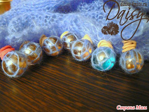 Достаем, аккуратно удаляем стеклянные шарики и резинки, расправляем еще влажный шарф, придавая тот вид, который Вам нужен. Вуаля! Объемный шарф в технике мокрого валяния готов!