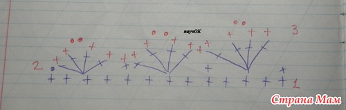 последний ряд - схема, ряд 3 (красной ручкой ст без накида и пико из 2-х в. п.) - контрастной нитью