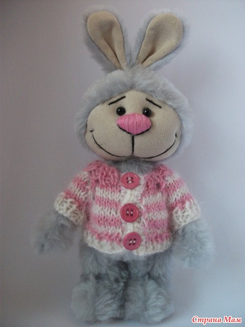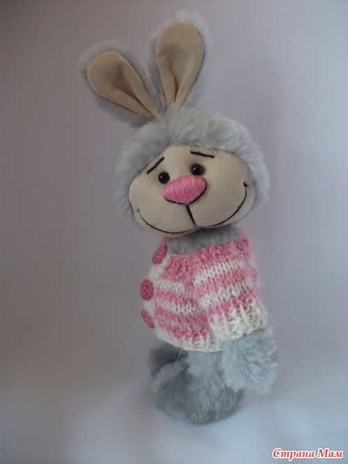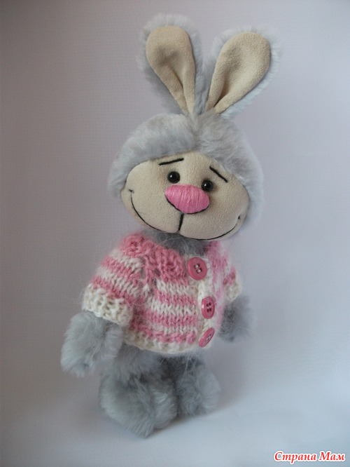 Зайка Фенька сшит вручную из икусственного меха. Ручки, ножки, голова подвижные (на шплинтах). В ногах и пузике металлический гранулят. Кофточка связана из махера, снимается. Рост 22 см вместе с ушками. Цена 2500 руб.+ пересылка Читать полностью