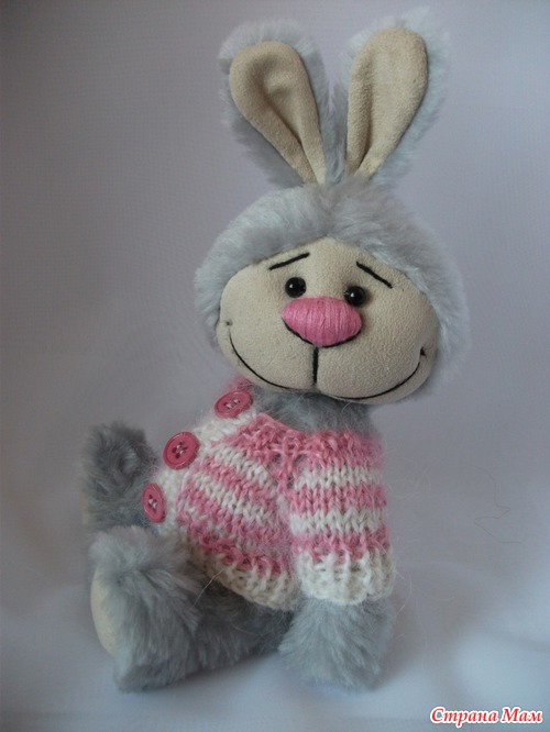 Зайка Фенька сшит вручную из икусственного меха.