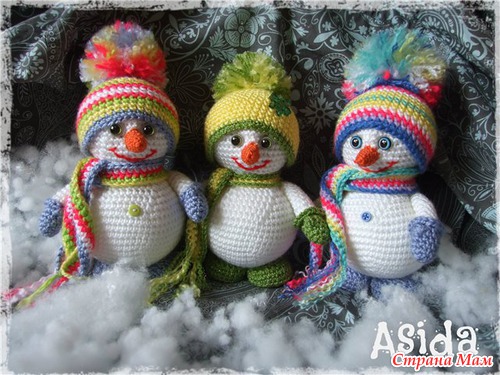 Осталось связать шарф и шапинку и снеговик готов! Ну и про улыбку на забываем!