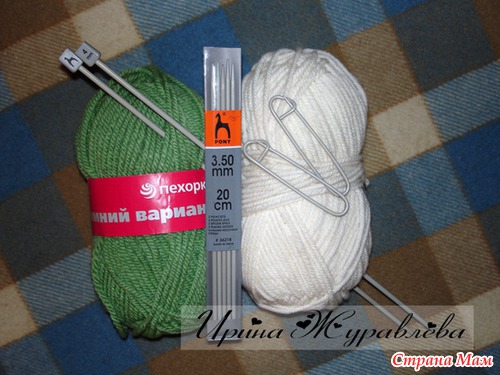Итак, у меня в закромах было: пряжа "Зимний вариант" от "Пехорка" (в 100 г - 100 метров, 95% шерсть, 5% ПАН). Спицы носочные и парные №№ 3,5 - 4.