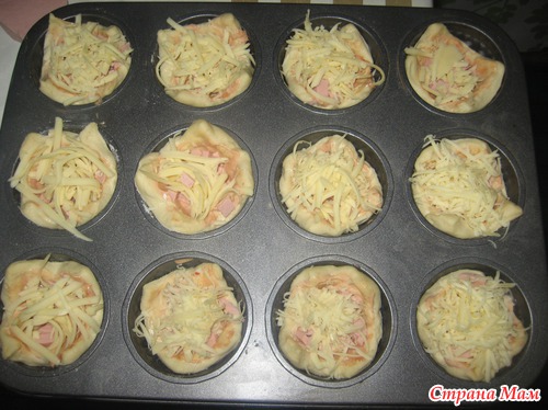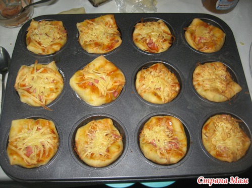 Для мужа и себя любимой пеку пицачки, обожаю их. Пеку в форме для кексов, предварительно смазываю форму растительным маслом, раскладываю тесто, смазываю его смесью из кетчупа и майонеза, выкладываю сверху ветчину или сосиски, закрываю сыром натертым.