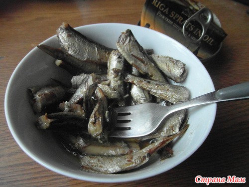 -шпроты подавить вилкой