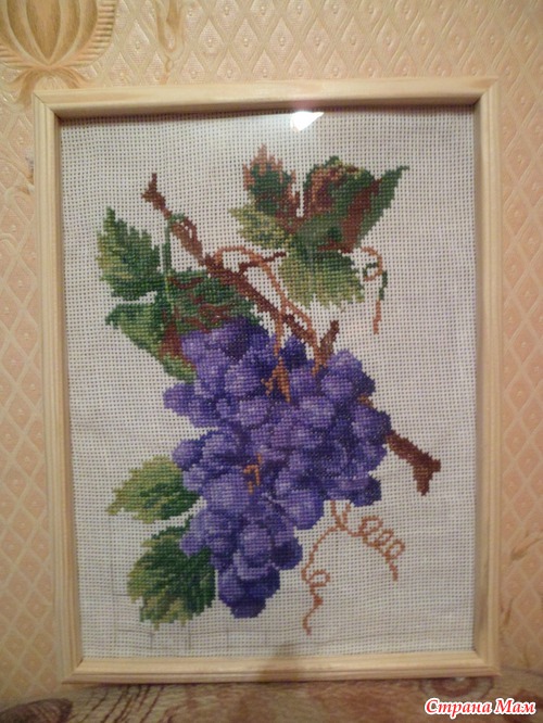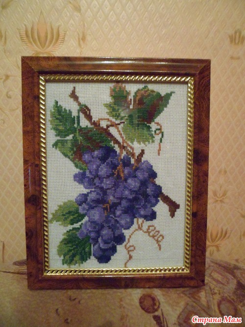 Я уже выставляла на ваш суд мою картину "Гроздь винограда", но тогда я не нашла для нее подходящую рамочку. Ничего так и не находилось и вот сегодня чисто случайно вспомнила, что... в закромах должна быть заветная рамка