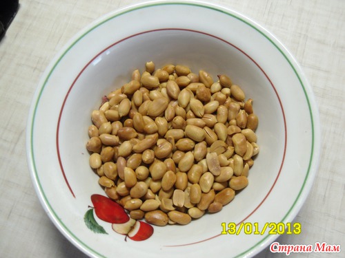 Арахис я заранее высушила в духовке и очистила от шелухи.