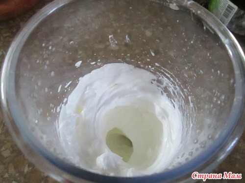 Итак, отделяем желток от белка. Белок взбиваем с щепоткой соли до устойчивых пиков.
