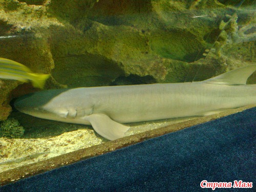 Небольшая акула отдыхает на песочке. Их там много, самые крупные длиной около 2х метров.