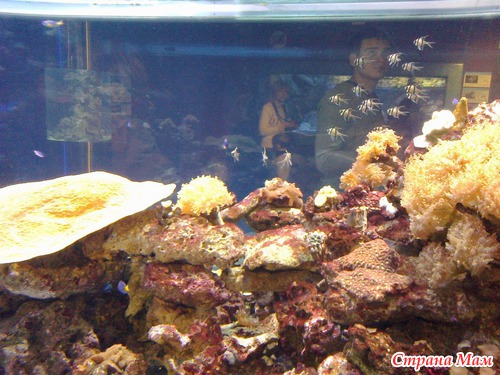 В минувшее воскресение наконец-то выбрались в петербургский океанариум, благо ребёнку было давно обещано. Народу - масса, большинство - с детьми, даже совсем малышами, билеты недешёвые - для взрослых, но детям - с хорошей (в несколько раз) скидкой. Мишка просто пищал от восторга! да и нам очень понравилось. Хотя народу в выходной ден было много, всё можно было спокойно посмотреть и даже сфотографировать. Не судите строго, фото делала телефоном, да и условия для съёмки - не самые лучшие, тем более, что рыбы - постоянно в движении.