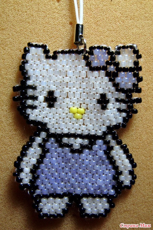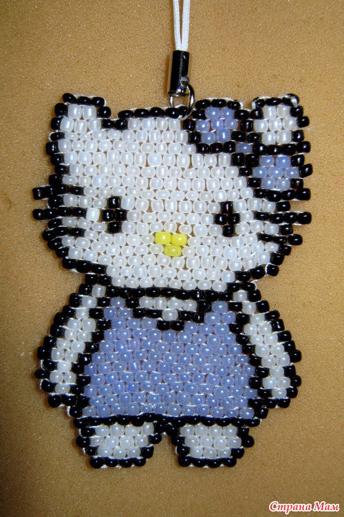 На нитке, в технике "кирпичный стежок".
