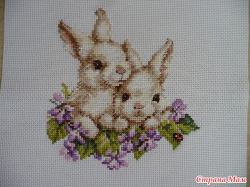 А вот еще милые крольчата, тоже недавно вышила!