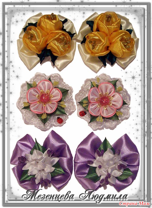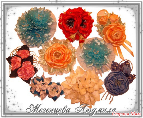 Ну вот, поднакопились у меня опять канзашики, выставляю на показ Детские резиночки Заколка-автомат Ну и цветочки из ткани разных мастей Читать полностью