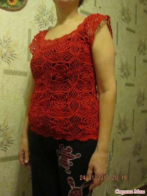 Связала себе топик с розами. Пряжа PELICAN,Vita Cotton. Состав:100% хлопок двойной мерсеризации, 330 м, 50 гр., цвет № 3966. Ушло меньше 4 мотков. Крючок № 1. Проймы обвязала пикошками, а низ и горловину - веерочками. Спасибо всем девочкам за их советы: https://www.stranamam.ru/post/4819300/. Вы мне очень помогли. Ну и смотрите, что в итоге получилось.
