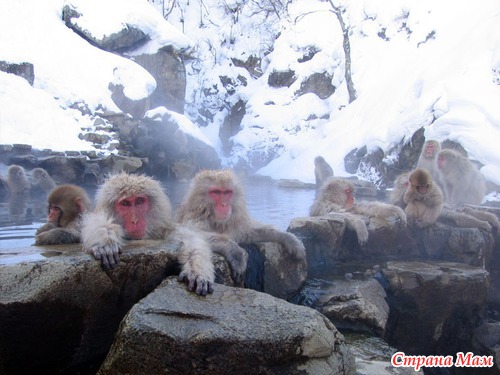 Даже обезьянки любят купаться в горячих источниках