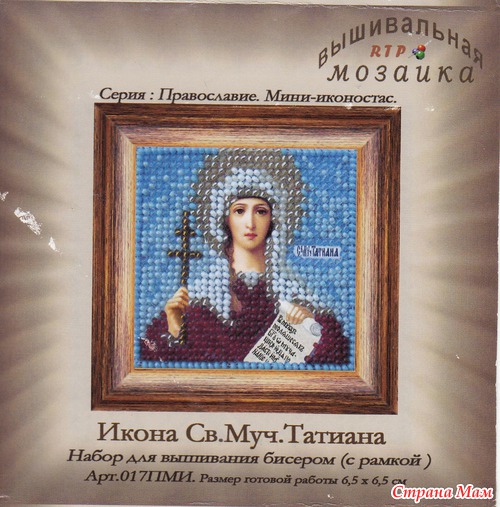 Сегодня, в Татьянин день, приготовила для своей лучшей и любимой подружки подарок. Вот такую миниатюрную икону бисером. Размер всего 6,5х6,5 см. (набор был с готовой пластмассовой рамочкой. 3 вида креплений (магнит, подставка, и на стену крепление). Читать полностью