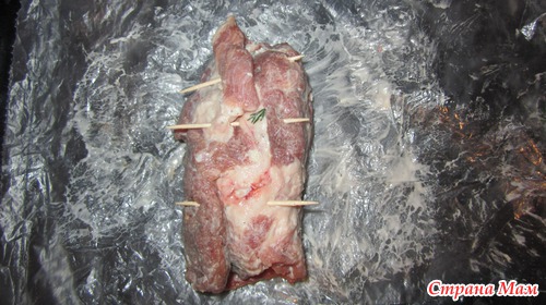 Свернуть в рулет, сколоть зубочисткой