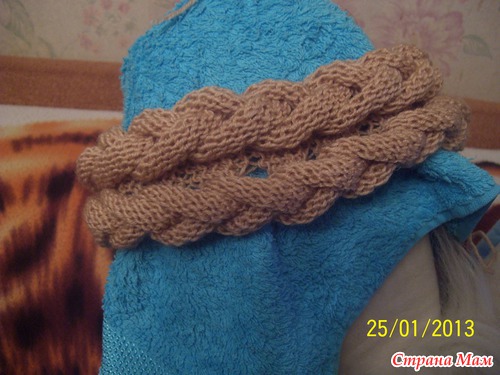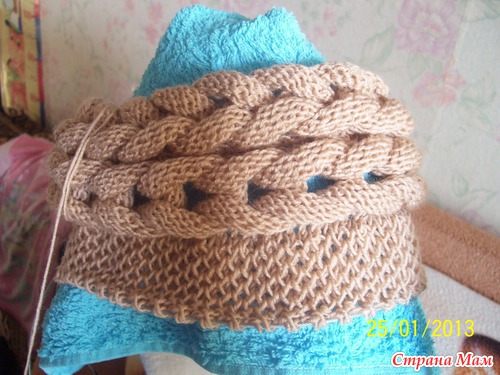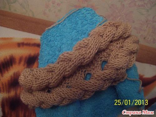 Связала по описанию косы. Вроде все было хорошо. Как стала с боков вязать основным узором, так косы растянулись в ширь, и стало видно большие дыры в центре кос.