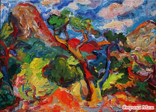 У мамы знакомая- интереснейший человек, композитор, исполнитель и др. и пр.Короче еще и картины пишет в стиле "Детский примитивизм". И очень даже приятные.
