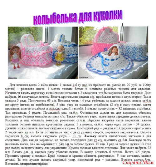Тэги: вязание, колыбелька для куклы