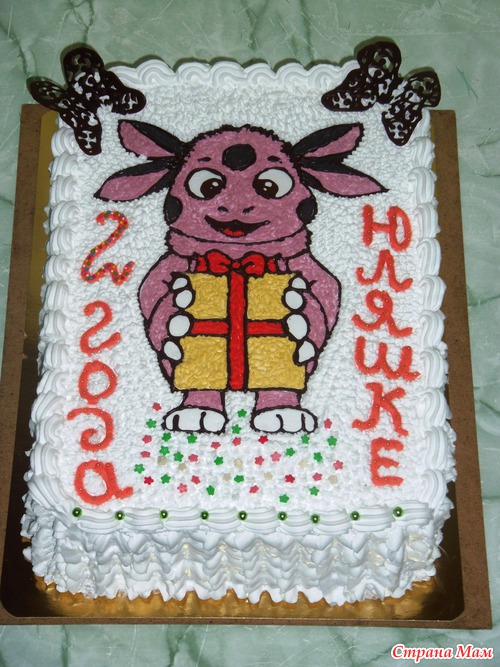 Внутри неизменный "Воздушный сникерс". Вес 3 кг. ММ мастика. Под мастикой полуганаш. Впервые рисовала красками по мастике.