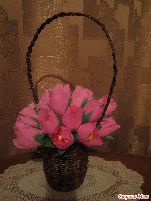Букет то сделала, но встал вопрос в какую корзинку их поставить?