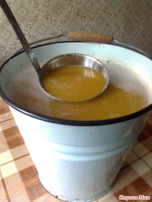 Ставим варить. Кипятить 10 - 15 минут. Пенку и всплывшую муляку снимать. Заливать в горячие банки и закручивать.