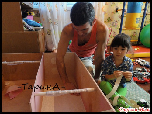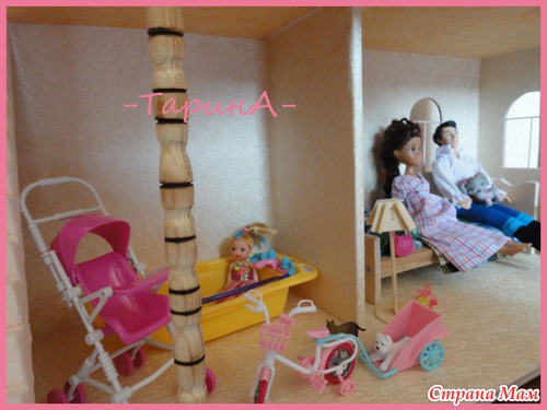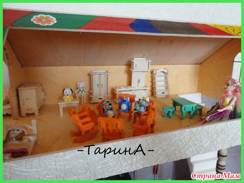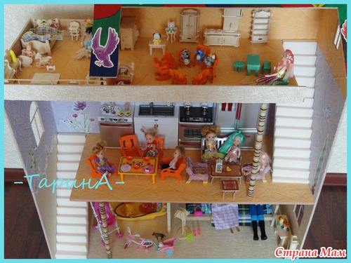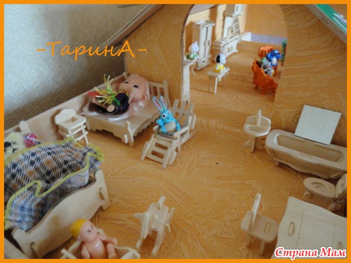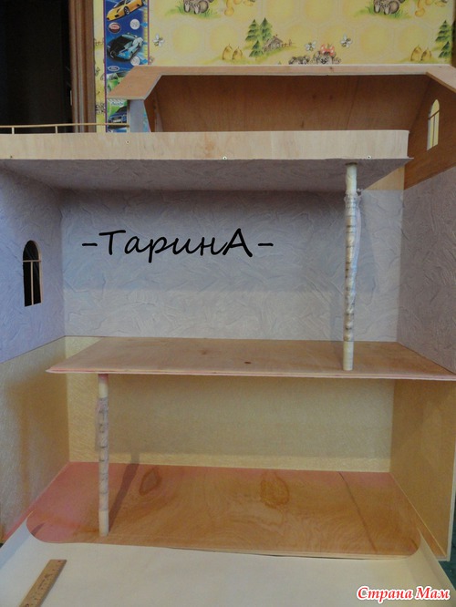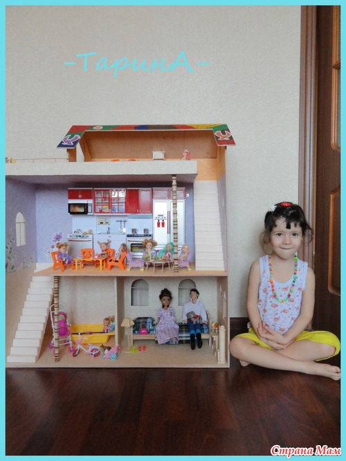 Здравствуйте. Вот такой домик родился совсем недавно, давно дочка просила подарок такой и вуаля!!! Высота домика 90 см, 1 этаж- 32см, 2 этаж - 35см, ну а 3 этаж - детская с балкончиком. Ещё осталось шторы сшить. Читать полностью
