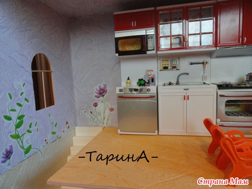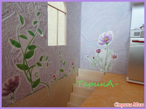 лестница из пенопласта, 1 день вырезали из фанеры заготовки для стен, 1 день собирали, 1 день окошки мучали и 2 дня обклеивали. Получается около недели