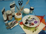 я брала акриловый лак для дерева глянцевый, матовый, купила кракелюрный лак "антик" , клей ПВА банку...также брала разные акриловые краски в маленьких фасовках золотые разных оттенков и серебро.
