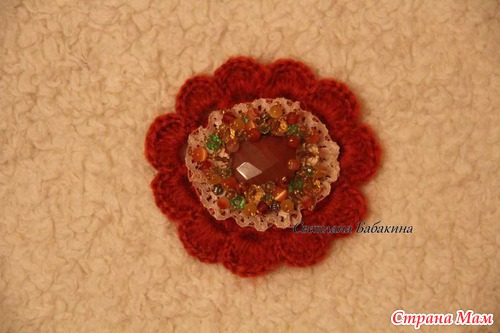 Брошь из натуральных камней Сердолик и кошачий глаз, её я только обвязала, чтобы она влилась в комплект