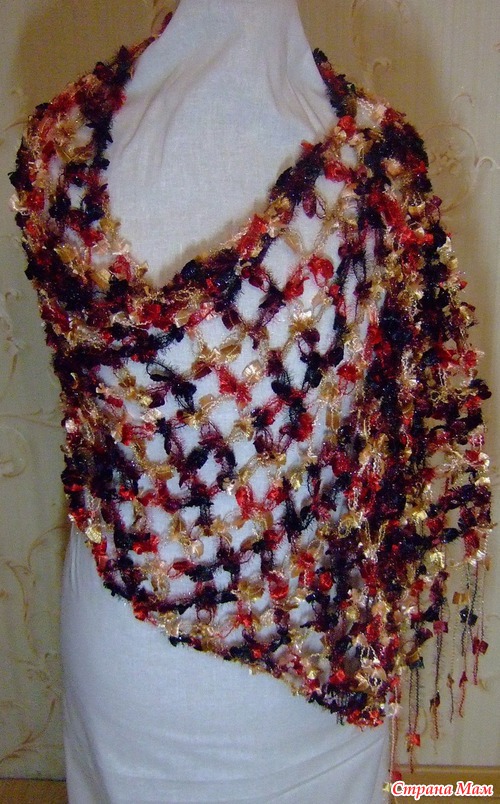 а это уже другая пряжа, тоже турецкая называется "Бонсай" палантины связаны крючком.
