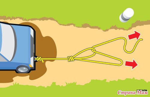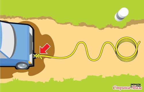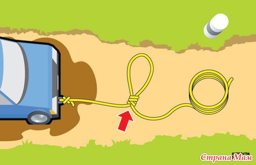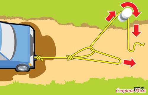 у меня в машине какой то трос, от самолета американского (муж принес) прочныйййй, и кувалда зачем то в машине валяется. Крюка тоже нет, но муж за что то цепляет.