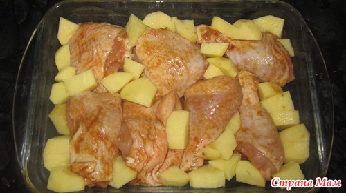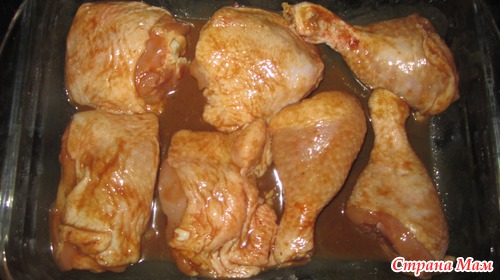 Залить этой смесью курицу и хорошо перемешать