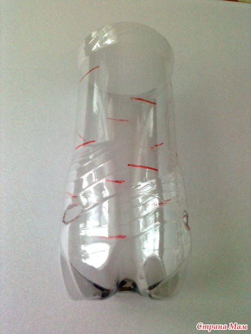 Подсмотрела такую удивительную и необычную посадку лука здесь https://www.stranamam.ru/post/4604173/#com31273501 Сажаю я как всегда классически - в лоток. Теперь, в целях экономии места на подоконнике, сажать только в бутылки!!! Здесь у меня бутылка 2-х литровая. Отрезаем верх. Маркером намечаем, где будут отверстия для лука. А так как у меня лук крупноватый, то я делала по три отверстия в ряду. Отметки делала в шахматном порядке.