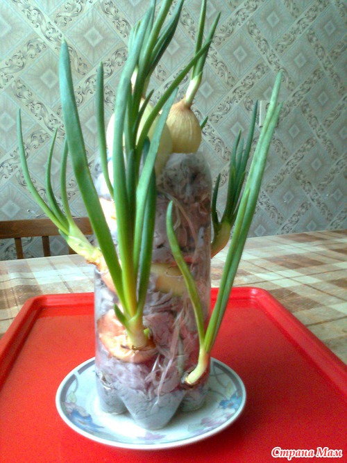 Для сравнения: это 1,5 литровая бутылка. В неё помещается всего два лука в ряд.