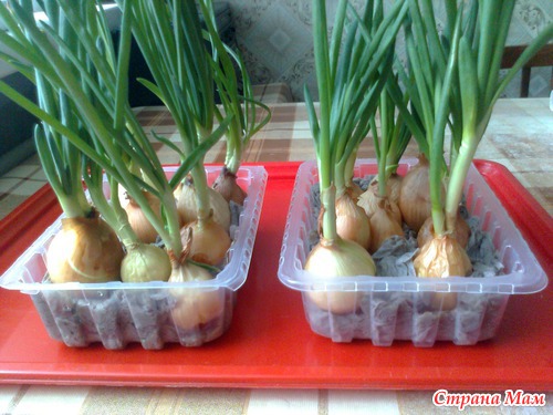 Наглядная экономия места на подоконнике. Количество луковиц в этих двух лотках равно тому, что я высадила в 2-х литровую бутылку.