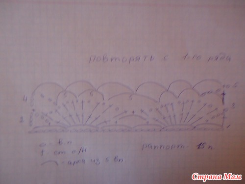 Тут я провязала 7сс/н, а в след. ряду вязала так ссн, пико, 1вп и т.д. 7 раз.