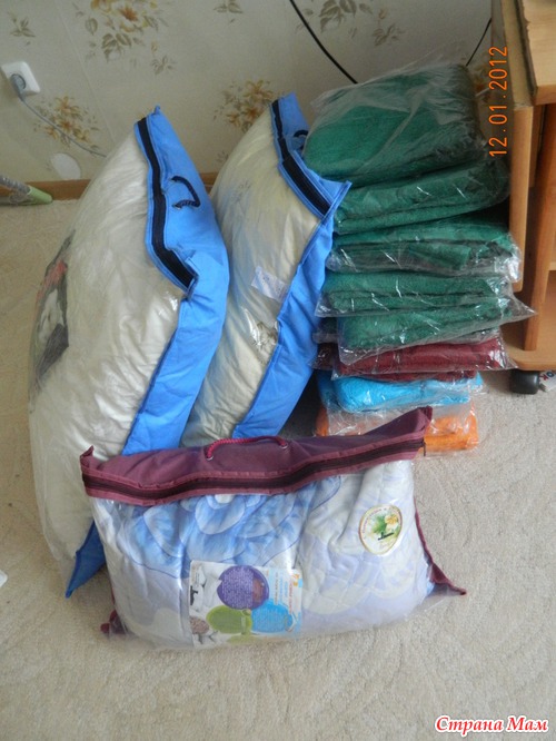 Первая посылочка была получена мною 12 января 2013 года. Там были подушки бамбуковые, с лузгой гречихи и полотенчики. Полотенчики были подарены на Старый Новый Год друзьям (правда 7 штук еще лежат и ждут, когда их пристроят). Подушка из бамбука просто великолепна, мне на ней прекрасно спится. А вот с лузгой гречихи... Никогда бы не подумала, что подушка столько весить может! Но с другой стороны: я уже придумала, что из нее сделаю 2 поменьше - себе и мужу.