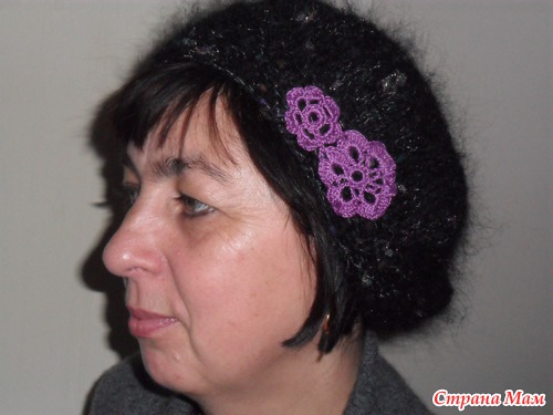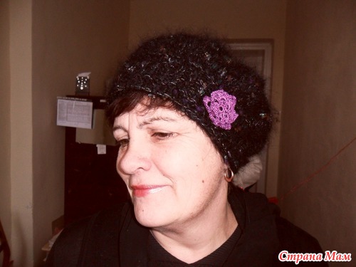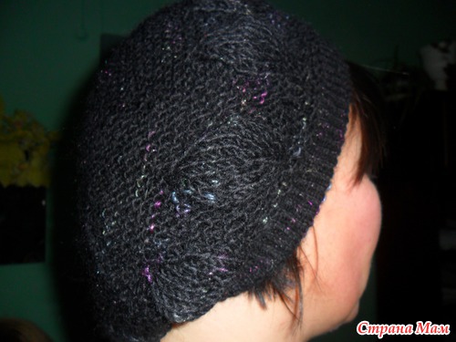 берет связан спицами по описанию из журнала. там к нему еще и шарф-бактус прилагается (может захотите связать).
