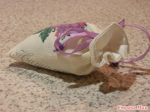 Мешочек вышит вручную, техника - счетный крест.
