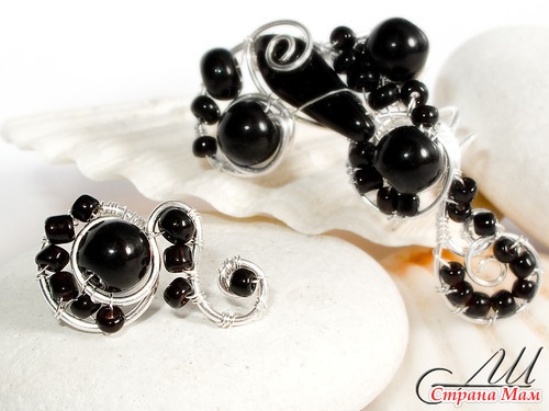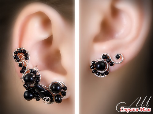 Кафф с чёрными бусинками и сережка-гвоздик для комплекта. Кафф носить удобно на любом ушке (мне больше понравился на правом).