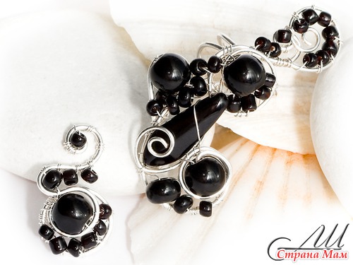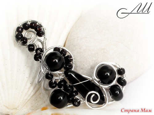 Материалы: Посеребрённая немецкая проволока, стеклянные бусины, бисер