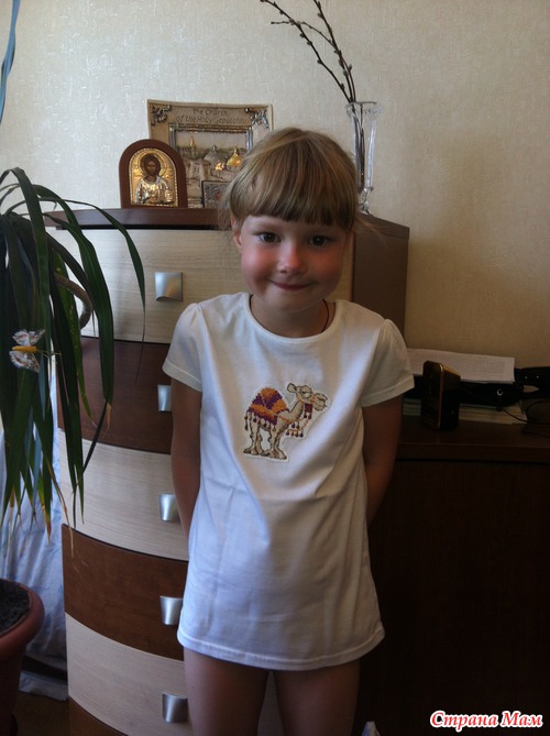 Просто чудесно! Аккуратно! Мило! Только никак не пойму технологию соединения ткани футболки и канвы. На фото края канвы как приклеены. В чём секрет? Поделитесь, пожалуйста!
