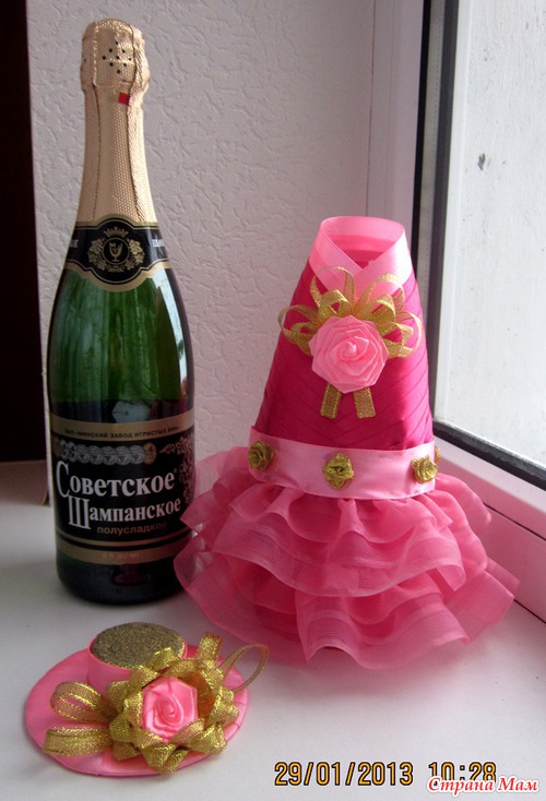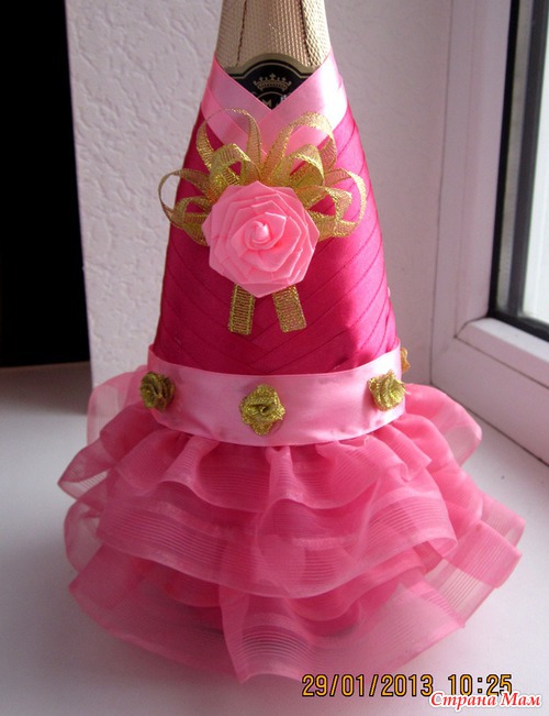 Здравствуйте!! Всё заглядывалась на нарядные бутылочки, да сама делать не решалась. И вот время пришло!! Спасибо Маше (Maxendra) за советы, помощь и моральную поддержку!!!