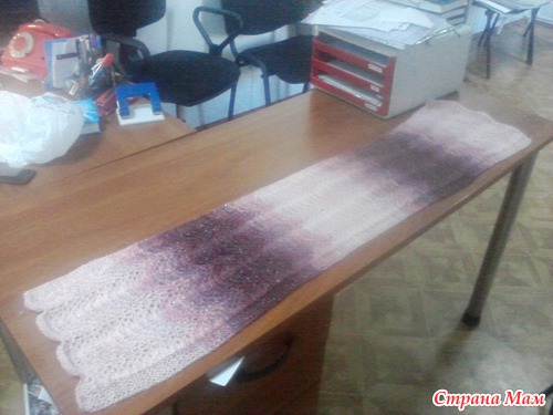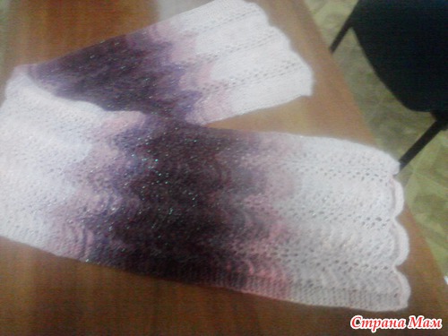 Шарф спицами узором "Павлинье перо"