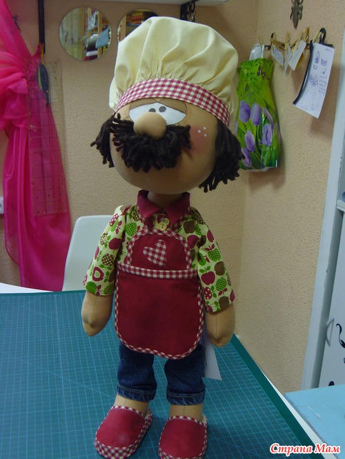 Ну, конечно же, в моей творческой жизни))) Вод делаю я, делаю все девочек, да девочек... все такие милые и улыбчивые... И в один прекрасный момент стукнуло мне в голову сделать мужчинку... в голове сразу сложился образ доброго повара, который встречает на пороге своего дома, приглашает к столу и потчует разными вкусностями, пирогами да плюшками)))