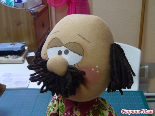 Решено было его сделать лысеющим... проблемы с подгоном выточек совсем не встало (у меня пунктик на этом деле - все должно быть идеальным, ну или почти идеальным, даже в тех местах, где не должно быть видно). Мужчинка решил обрядиться в тапки, ну он ведь дома творит свои кулинарные шедевры))) зато в самых настоящих джинсах))) с карманами и ширинкой... все как надо)))