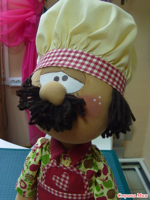 Ну, конечно же, в моей творческой жизни))) Вод делаю я, делаю все девочек, да девочек... все такие милые и улыбчивые... И в один прекрасный момент стукнуло мне в голову сделать мужчинку... в голове сразу сложился образ доброго повара, который встречает на пороге своего дома, приглашает к столу и потчует разными вкусностями, пирогами да плюшками)))