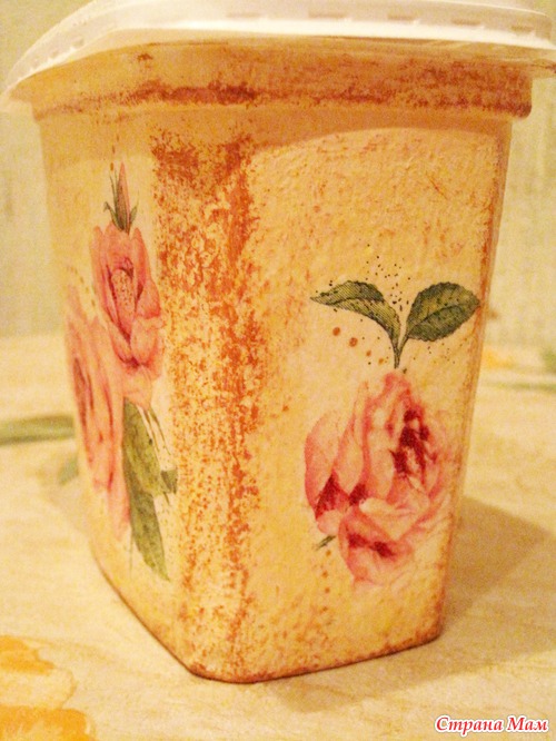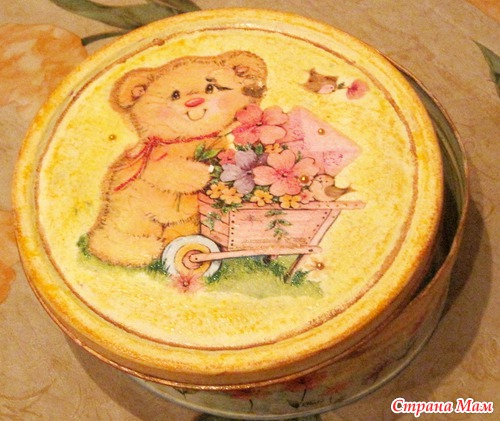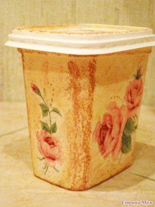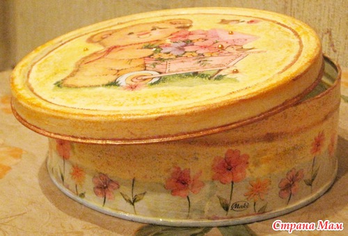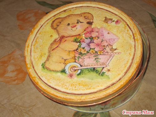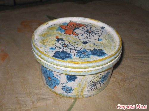 Вот доче сделала баночку от печенья, крышку уже погнули, старенькая, доча в нее играла, а я решила облагородить. Счастья не было предела